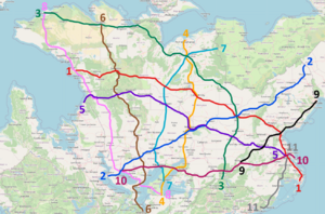 - Maintain as much existing mapping as possible, including minimizing changes to the "grid" of motorway numbers that have already been assigned.