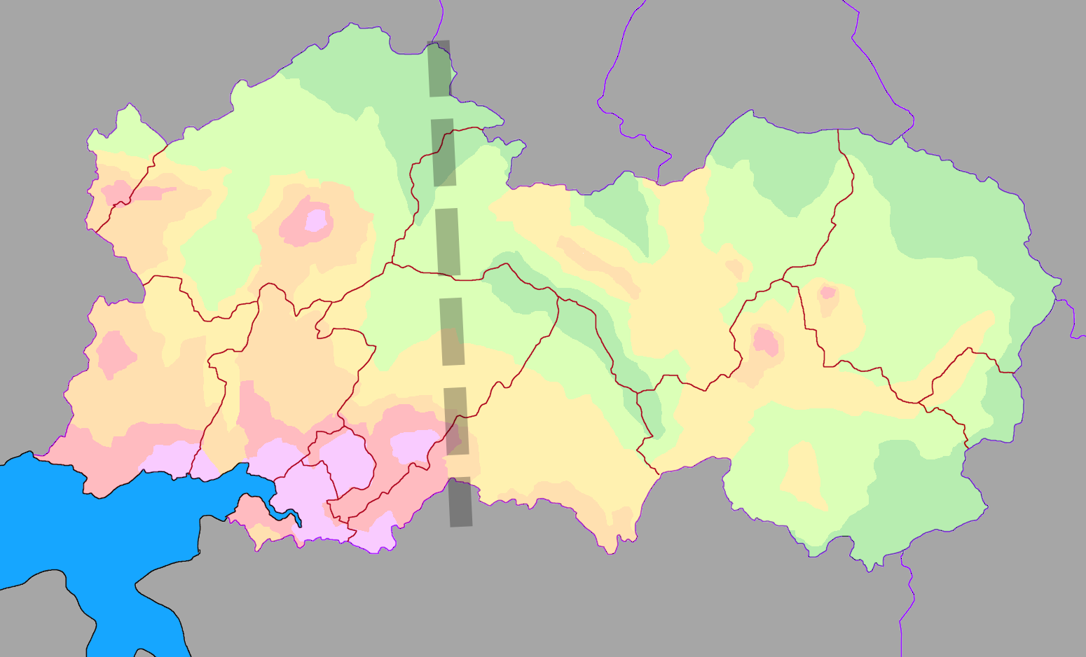 East of this imaginary line, the country is much more hilly, and the country is less developed. There is less agricultural activity here, but the economy is more built around mining operations, tourism, lumber and animal products. There is a railway connection from the largest eastern cities (Oersem and Wietemtore) towards the capital, due to the prevalence of mining operations here, however the population numbers here are quite low, and the standard of living here is much lower than even the northern-western reaches of River Potte's basin. This area is more based on south Germany, though I intend to take inspiration from Eastern European rural areas as well.